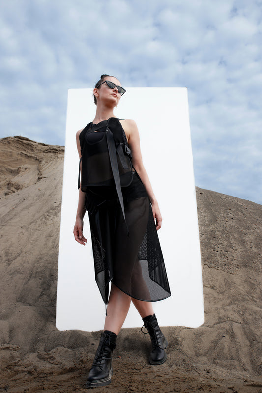 Black mesh skirt long