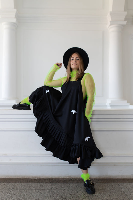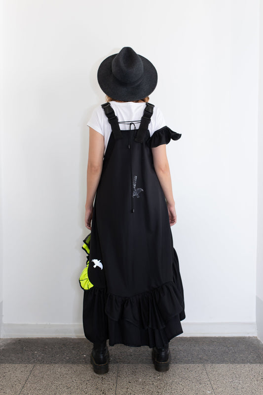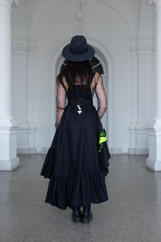These aren’t fragile dresses. They’re built from industrial-inspired materials and shaped with adjustable cuts, open movement, and bold lines. Whether you’re layering up or wearing it solo, each design is made to feel like your own — adaptable, expressive, and never average.