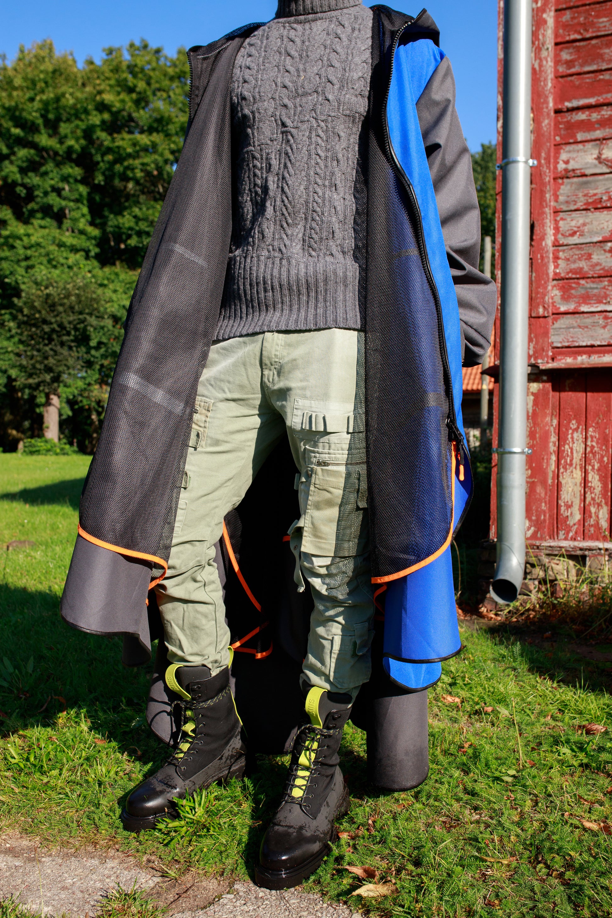 Grey and blue raincoat unisex