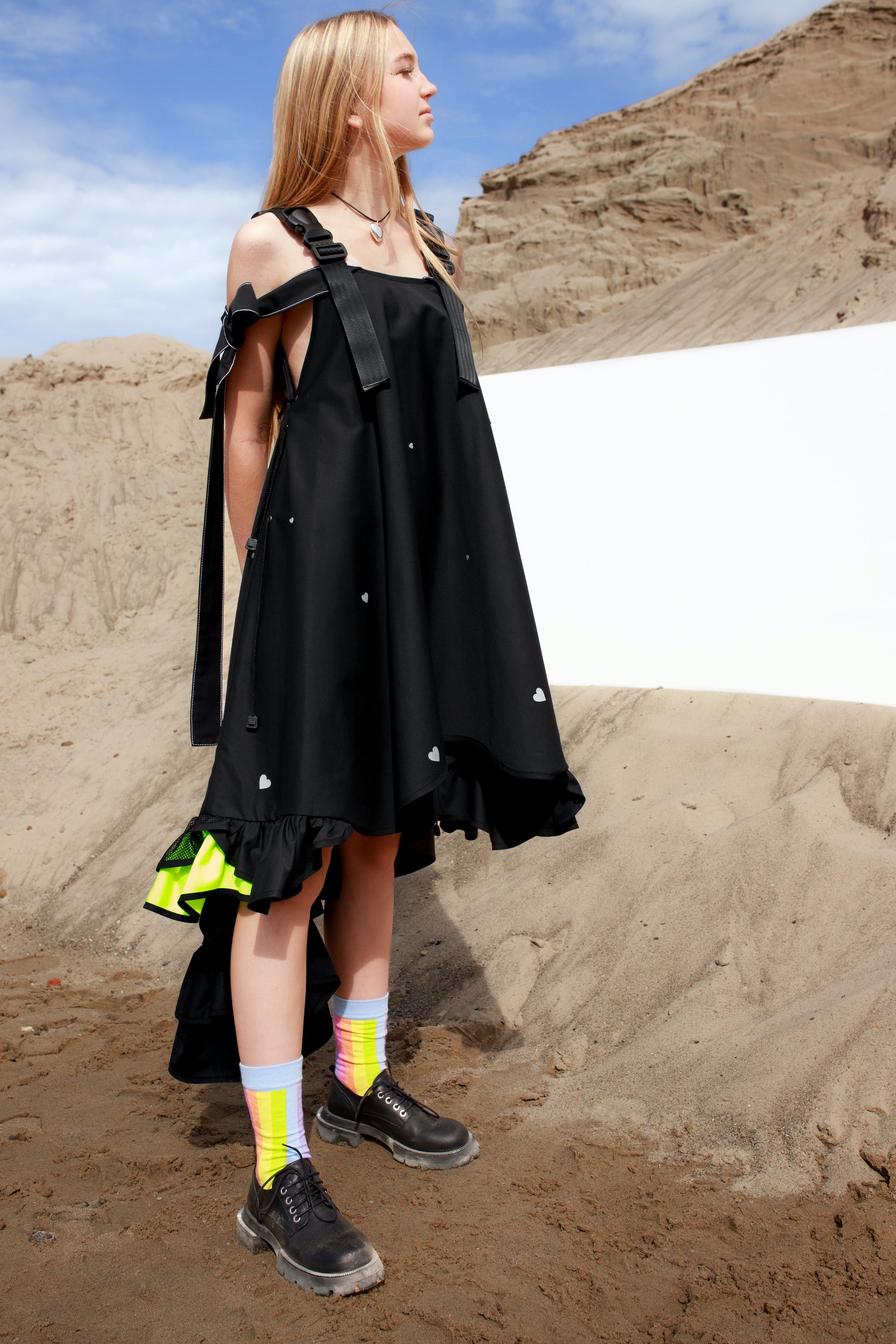 The straps are adaptable, you can wear the dress high or lower it down.